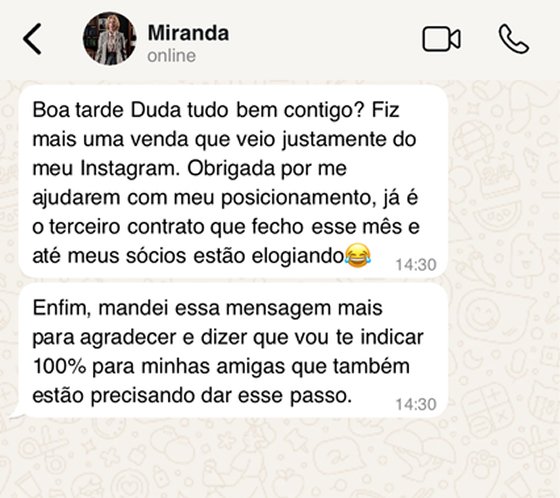 Você terá minha expertise e a mão de obra da minha equipe de marketing:
